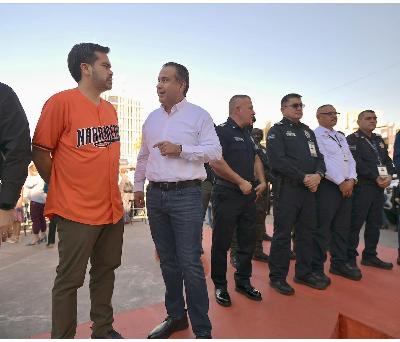 En el acto protocolario para la entrega de las patrullas, el edil fue acompañado por Jorge Álvarez Maynez, quien estuvo de visita en la ciudad para asistir a eventos partidistas.