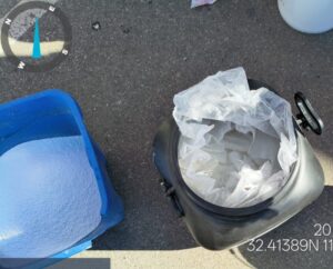 Elementos de la Guardia Nacional y del Ejército Mexicano llevaron a cabo la inspección de un tractocamión marca freightliner, color blanco que circulaba de este a oeste con dirección a San Luis Río Colorado, mismo que al ser inspeccionado por medio de Rayos Gama se detectó una inconsistencia en la carga de la caja seca, por lo que se procedió a la verificación minuciosa, localizando en el interior 18 tambos color negro con la leyenda Dynclor Granular.
