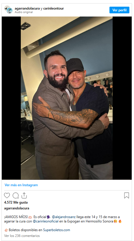 A través de las redes sociales oficiales de La Cura Fest de Carin León confirman la presencia de Alejandro Sanz.
