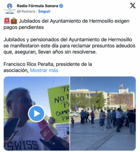 Jubilados y pensionados del Ayuntamiento de Hermosillo se manifestaron este día para exigir supuestos pagos pendientes y el regreso de prestaciones legales.