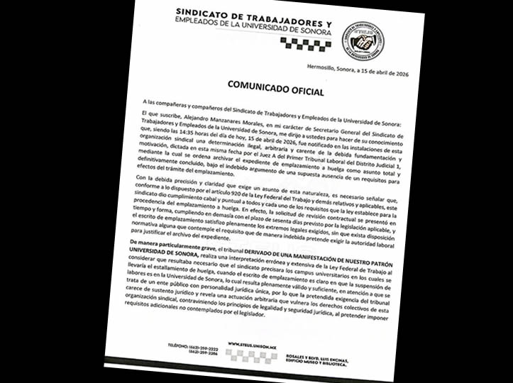De acuerdo con la propuesta, los aumentos para 2026 oscilan entre 12.88% y 4%, dependiendo del nivel EL SOL DE HERMOSILLO Ana María López La autoridad universitaria presentó su último ofrecimiento salarial dirigido a los trabajadores administrativos afiliados al Sindicato de Trabajadores y Empleados de la Universidad de Sonora (Steus), el cual contempla incrementos diferenciados para los primeros nueve niveles del tabulador, así como un […]